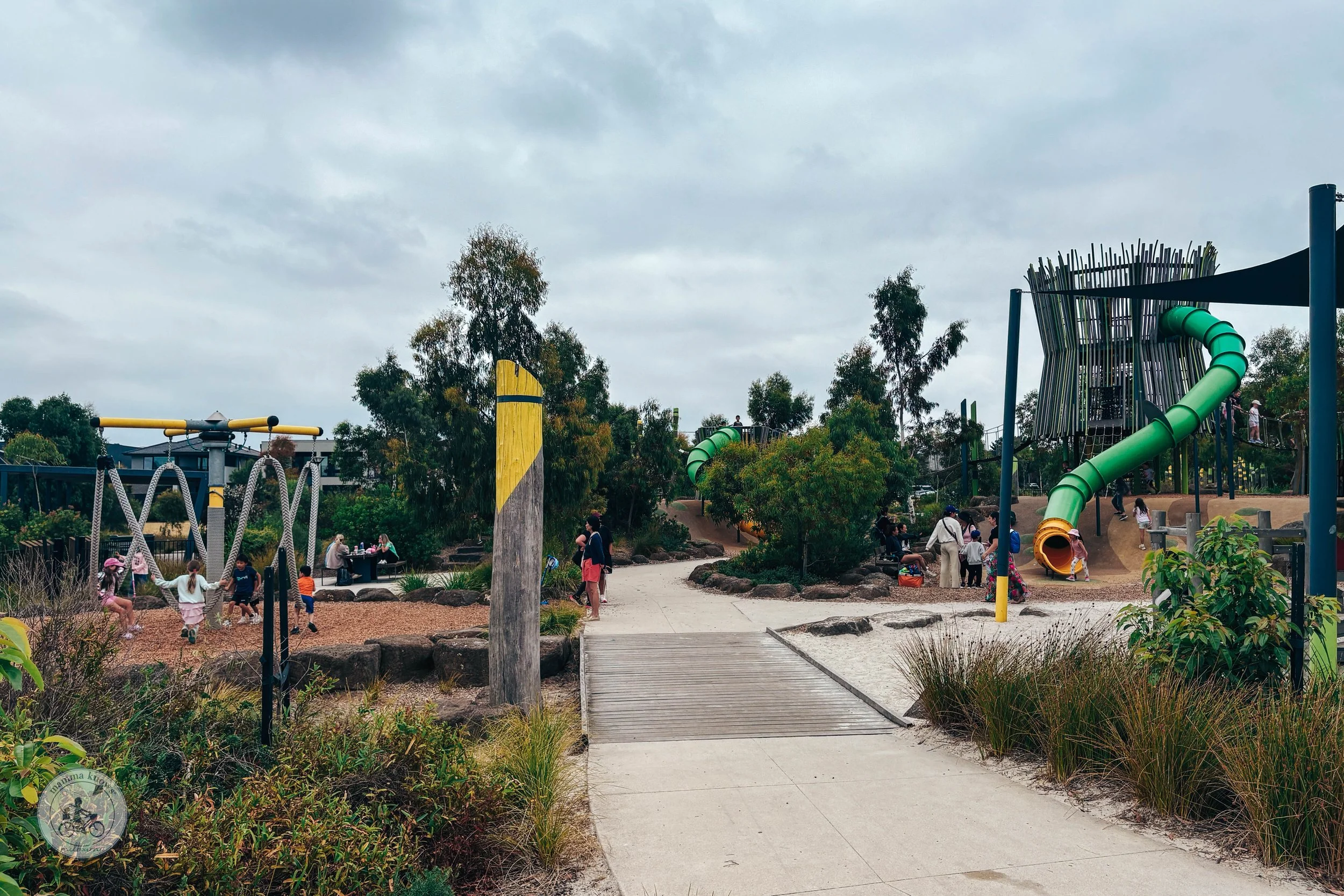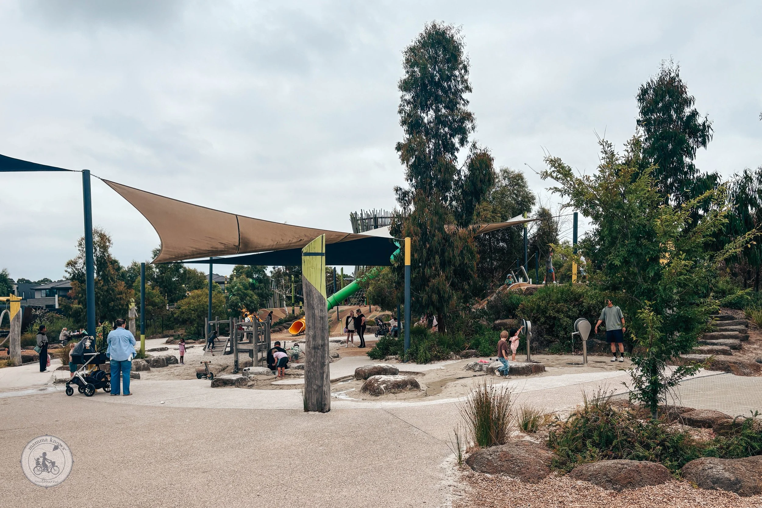 Picture beautiful signage, loaded fluffy focaccia sandwiches and refreshing iced strawberry matcha lattes… now imagine it all located right next to a fully fenced playground complete with water play, toilets and BBQS. **Mamma faints**